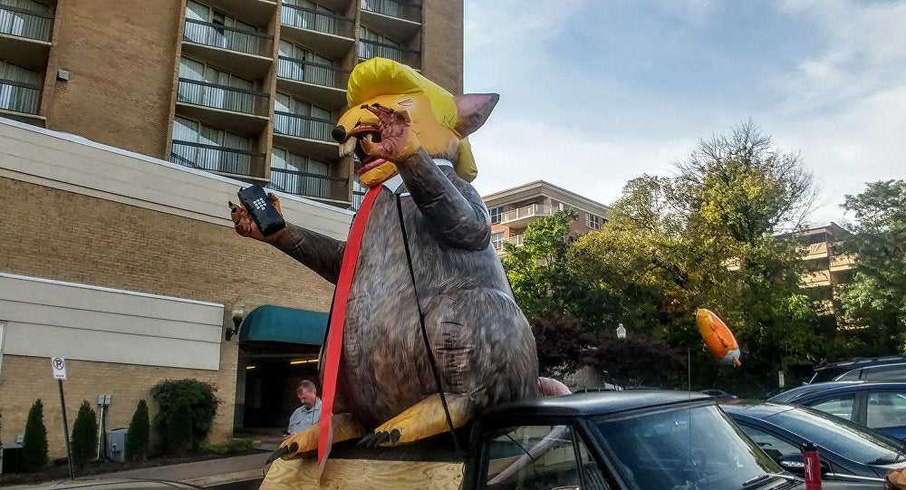 Progressive group giving out mini-'Trump baby' balloons ahead of protests