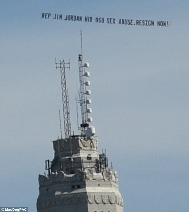 'RESIGN NOW!' Anti-Trump super PAC pays for sky-banner plane to claim Republican congressman 'hid' sex abuse in Ohio State University wrestling program