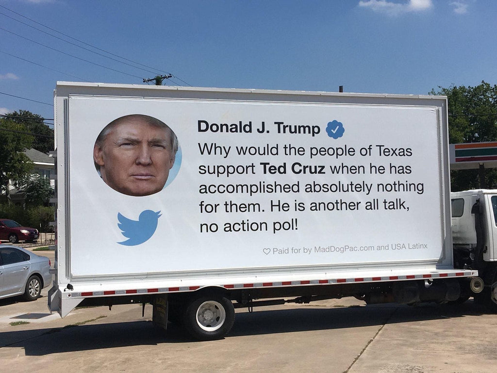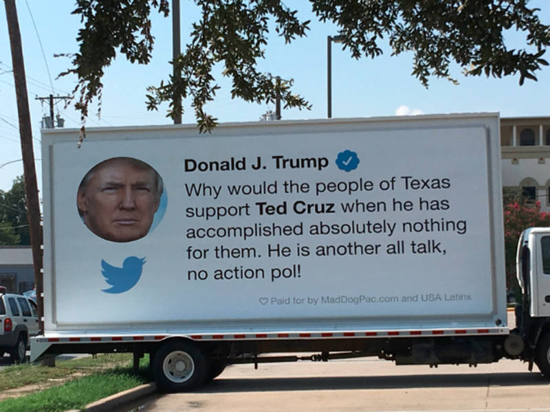 This ad attacking Ted Cruz is just a Trump tweet on a truck
