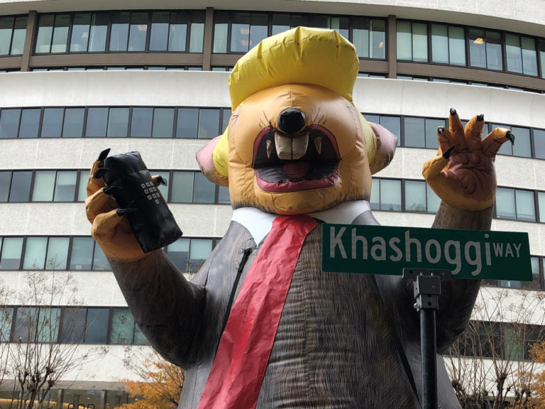 Anti-Trump Activists Put Up Their Own ‘Khashoggi Way’ Sign In Front Of Saudi Embassy